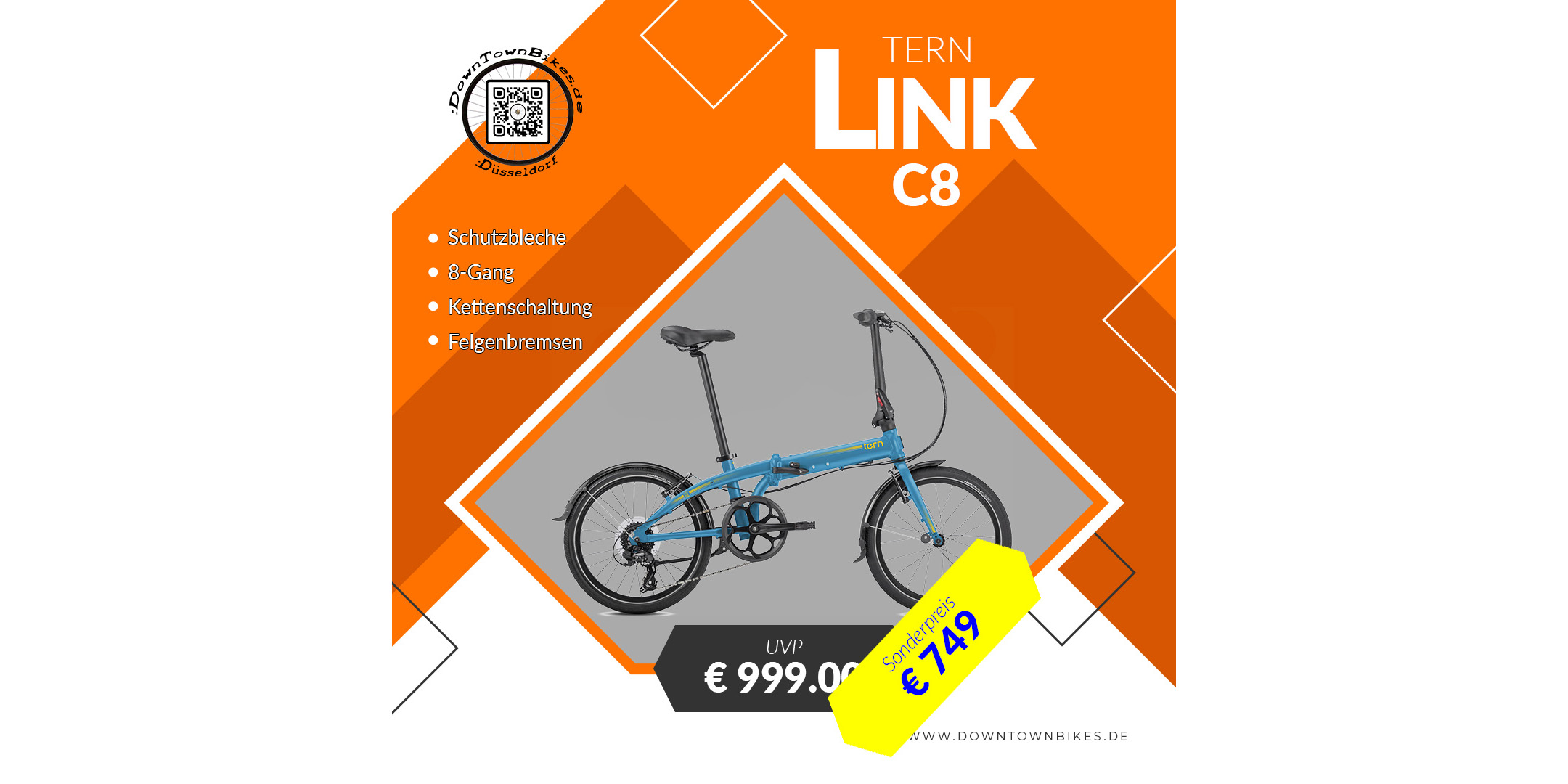 Aktuell stehen ein paar von diesem wundervollen Faltrad bei uns im Fahrradladen in Düsseldorf auf der Immermannstraße 34. Auf Wunsch kann man das Tern Link C8 online über unseren Shop bestellen.