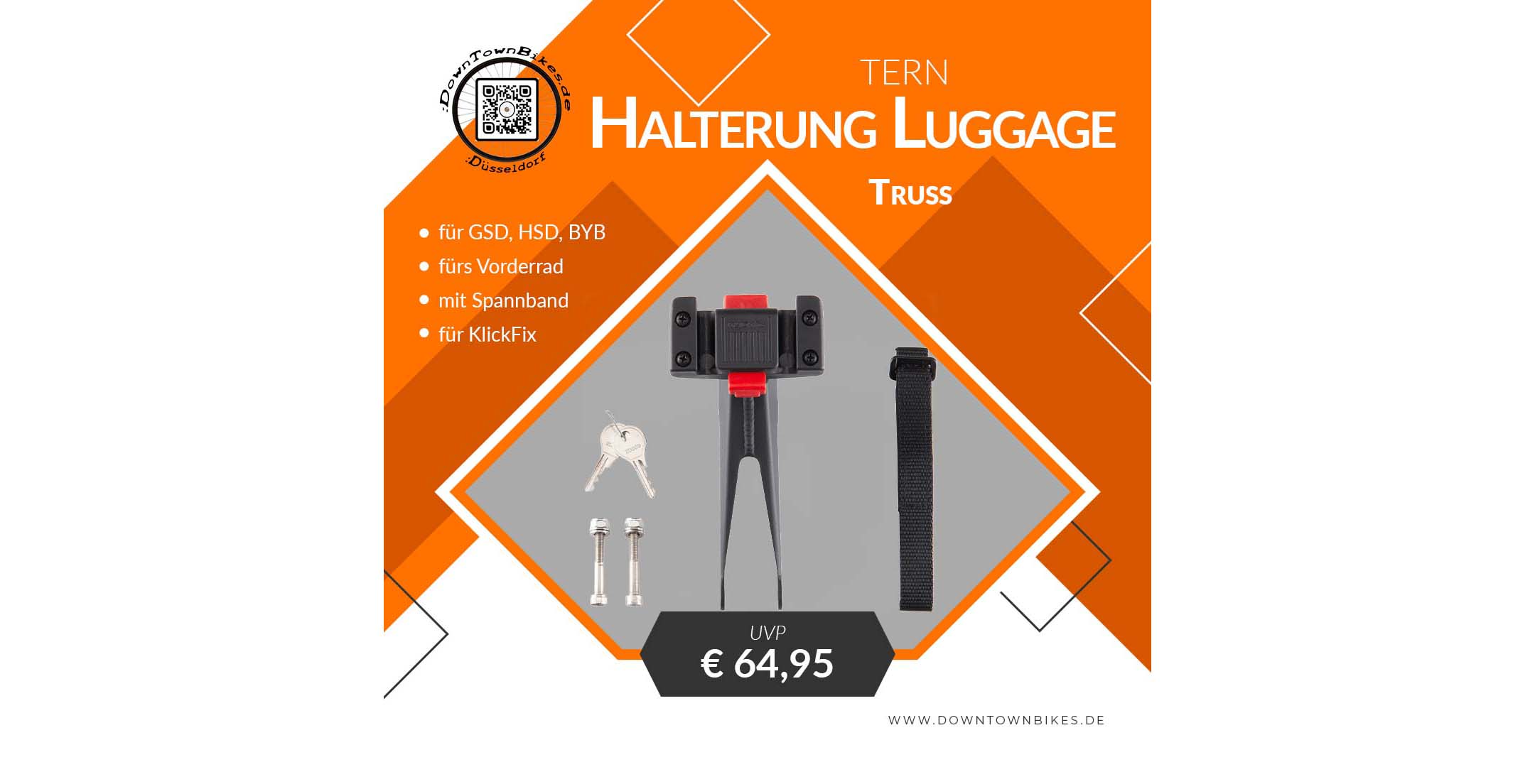 Aktuell ist die Halterung für das Tern GSD E-Lastenrad, das Tern HSD E-Kompaktrad und das BYB Faltrad bei uns in Düsseldorf verfügbar. Natürlich bieten wir wie immer die Möglichkeit die Halterung direkt in unserem Faltrad Onlineshop zu bestellen.